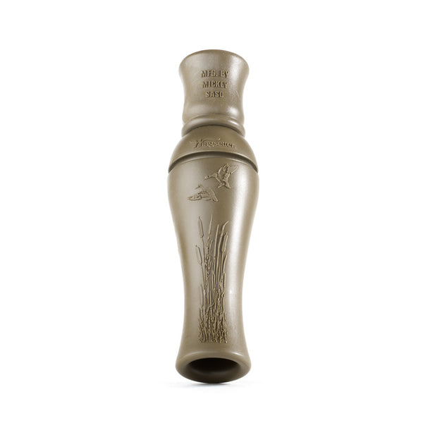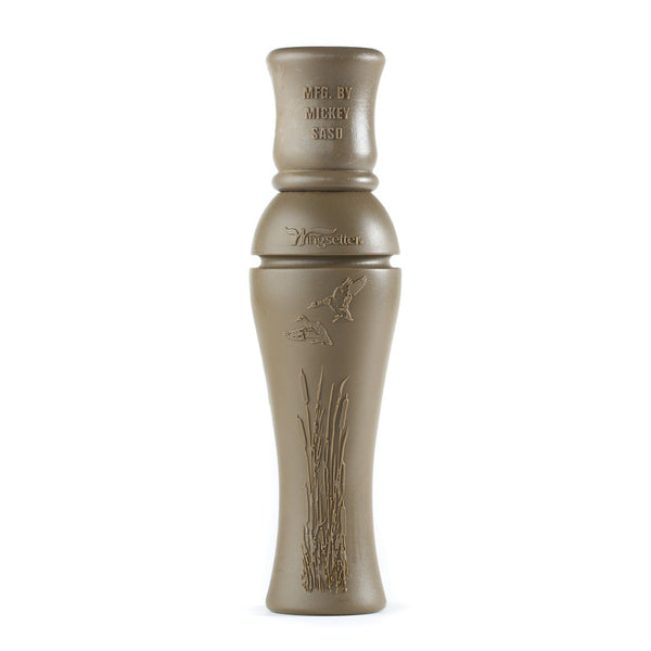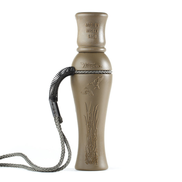 The Wingsetter Raspy Hen Duck Call can set the wings on all types of ducks- with a double reed system it has been used in many areas with overwhelming success. Manufactured by 25-time Pacific Flyway Calling Champ Mickey Saso, this double reed call can produce sound with little air making it an easy call to use. The call is raspy yet not too deep or loud that it is overwhelming, it produces a natural note that has produced great success all over the country. This call can do it all making it a staple for many hunters.