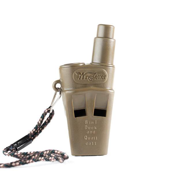 This unique call is designed and produced by famed caller Mickey Saso. The unique 8-in-1 combination includes calls for pintail, teal, widgeon, wood duck, mountain quail, bobwhite quail, gamble quail and valley quail. The 8-in-1 call features an easily adjustable slide to allow for quick tuning adjustments. Easy adjusting makes for always having the perfect pitch. Our best selling call that has proven itself year after year and has become the standard on the market for duck whistles.